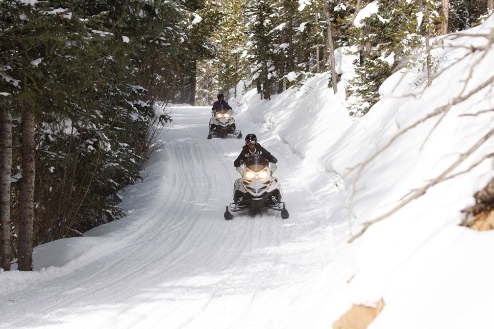 No snowmobiling is allowed in or around Warm Springs Ranch.